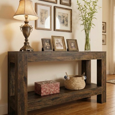 JVNOXK 39-inch console table with drawers, narrow wooden side table featuring a central storage shelf, suitable for hallways or living rooms, black