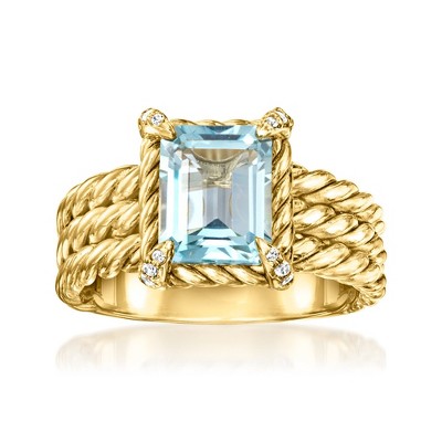Ross-Simons 17.00 Carat Simulated Aquamarine and .30 ct. t.w. CZ Ring in Sterling Silver