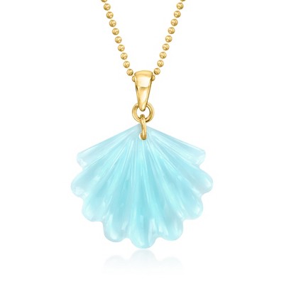 Ross-Simons Blue Chalcedony Seashell Pendant Necklace in 18kt Gold Over Sterling Size 18