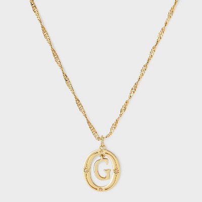 14k Gold Dipped Cubic Zirconia Letter Open Oval Initial Pendant Necklace - A New Day™ Gold