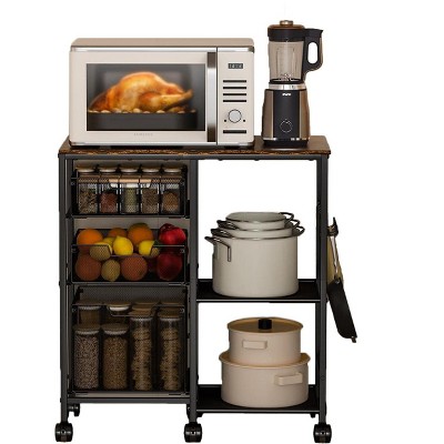 3-Tier Rolling Kitchen Cart with Wood Top, Handle & Wheels for Home Office Coffee Bar, Black
