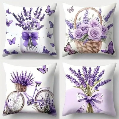 Lomsoe 4pcs Lavender Glass Jar Butterfly Soft Cushion Cover For Sofa Bedroom Living Room Home Decor 18x18in.