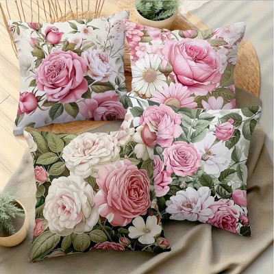 Lomsoe 4pcs Vintage English Rose Flower Soft Cushion Cover For Living Room Sofa Bedroom Home Decor 18x18in.