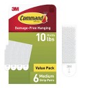 Command 6 Hooks 12 Strips Small Sized UtilityDecorative Hooks Value Pack White: Adhesive Wall Hooks, 1 lb Capacity