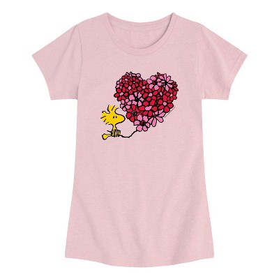 Girls' - Peanuts - Woodstock Floral Heart Fitted Short Sleeve Graphic T-Shirt