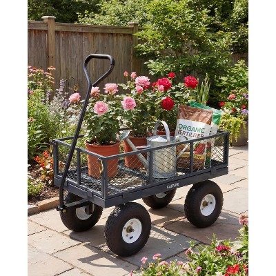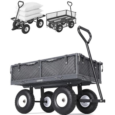 Versatile Outdoor Utility Cart, 400LBS Heavy-Duty, 10" All-Terrain Pneumatic Tires, Maneuverable Lawn Cart with Removable Mesh Panels for Gardening