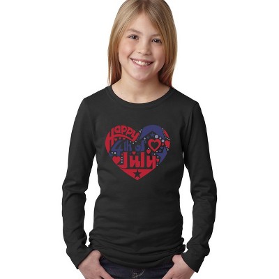 LA Pop Art July 4th Heart - Girl's Word Art Long Sleeve