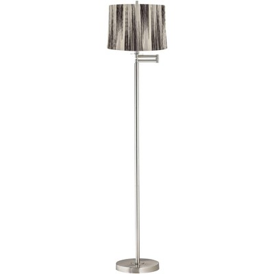 360 Lighting Druckman Modern 60 1/2" Tall Standing Floor Lamp Skinny Adjustable Swing Arm Silver Metal Brushed Nickel Finish Drum Black Stripe Shade