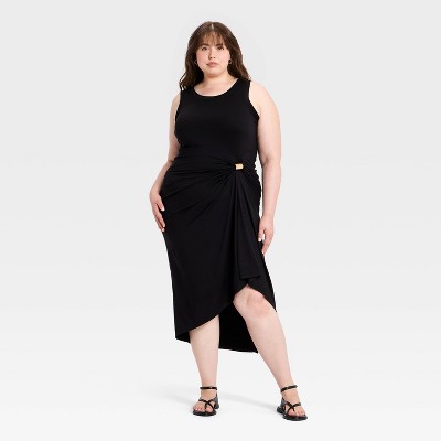 Women's Asymmetrical Knit Midi Dress - A New Day™ Black