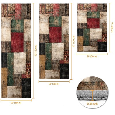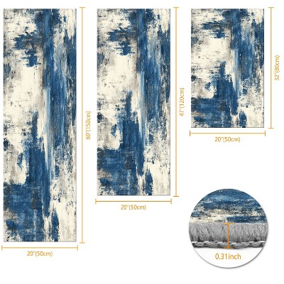 3Pcs Kitchen Rug Set Non-Slip Washable Abstract Soft Mat for Kitchen Bathroom Hallway Laundry Sink Floor