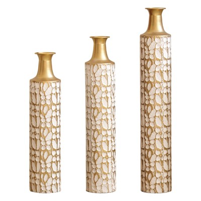 NAYSAYE Set of 3 Metal Decorative Floor Vases, Modern Tall Flower Vases for Home & Wedding Decor, Antique Brass and White, 36.2"*9.64"*9.64"