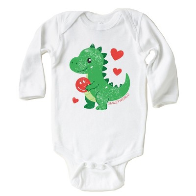 SmileyWorld Green Dinosaur Heart - Baby Long Sleeve Bodysuit