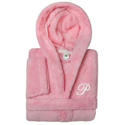 Personalized Linum Kids 100% Polyester SUPER PLUSH Double Brushed Hooded Bathrobe in White Script Font