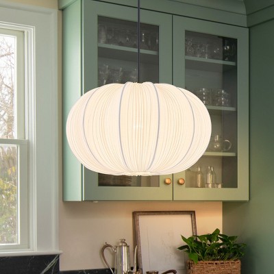 LLHZSY 15 3/4" Mid-Century Modern White Pendant Light, Adjustable Hanging Light with Pumpkin Shaped, Farmhouse Large Fabric Hanging Lamps
