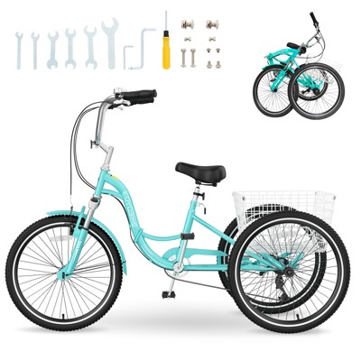 VEVOR Folding Adult Tricycle, 24-Inch Adult Folding Trikes, Carbon Steel 3 Wheel Cruiser Bike with Large Basket & Adjustable Seat