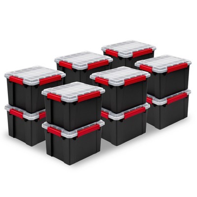 Sterilite 20 Gal Gasket Box, Stackable Storage Container w/ Lid, Black, 12 Pack
