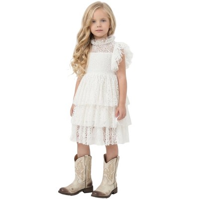2Bunnies Girls' 12M-8Y Baby Iris Lace Tiered Knee-Length Boho Flower Girl Dress