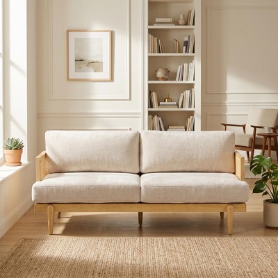 - exposed wood frame sofa