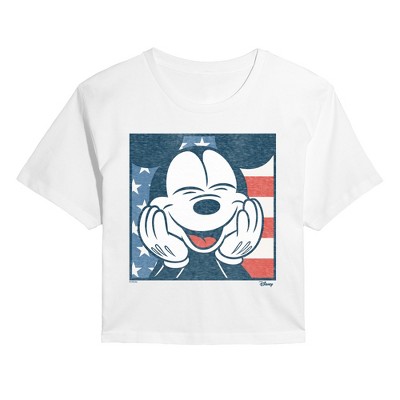 Women's - Disney - Mickey American Flag Cropped Graphic T-Shirt
