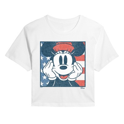 Women's - Disney - Minnie American Flag Cropped Graphic T-Shirt