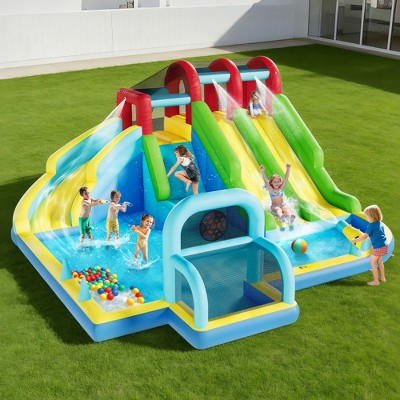 Kids Inflatable Bounce House w/ Blower & 3 Water Slides, Premium Oxford Bouncy Castle Jumper, Indoor Outdoor Play Center for Backyard Party Fun