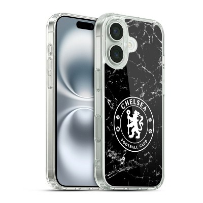 Chelsea Football Club Crest Black Marble Soft Gel Case for Apple iPhone 16 & MagSafe