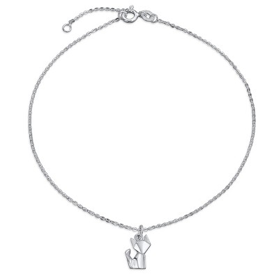 Bling Jewelry 3D Geometric Origami Jewelry Animals Pet Cat Kitten Anklet Small Charm Dangle Ankle Bracelet Sterling Silver Adjustable 9 To 10 Inch