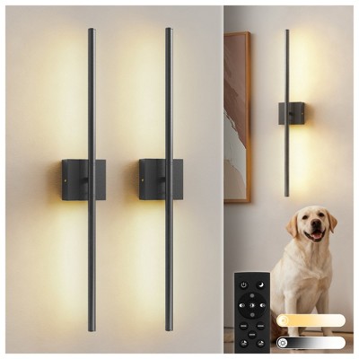 YANSUN 2-Pack 28.3 in. Black Modern LED Indoor Wall Sconce with Remote, Motion Sensor and Dimming, Modern Indoor Wall Light