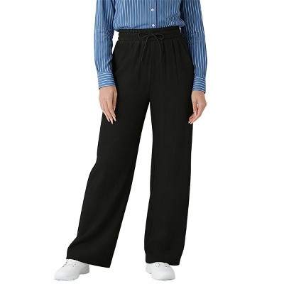 Women High Waist Drawstring Wide Leg Casual Pants with Side Pockets Elastic Waistband Beach Trousers