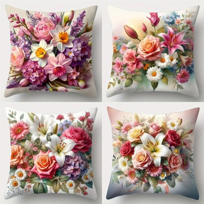 Lomsoe 4pcs Flower Throw Pillow Covers, 18x18inch, Spring Theme Floral Cushion Cases Decorative Sofa Couch for Bedroom Living Room.