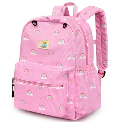 Narwey Corduroy Kids Backpack for Girls 5-8: Girls Backpack - 15 inch - Rainbow