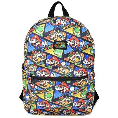 Bioworld Super Mario 16" Kids Backpack, Colorful All Over Print School Bag with Front Pocket & Side Mesh, Lightweight Travel Backpack