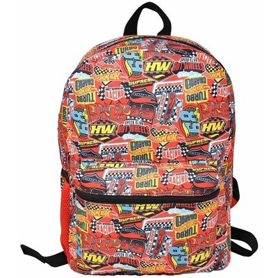 Bioworld Red Hot Wheels All Over Print 16" Kids School Backpack with a Small Front Pocket & Side Mesh Pockets