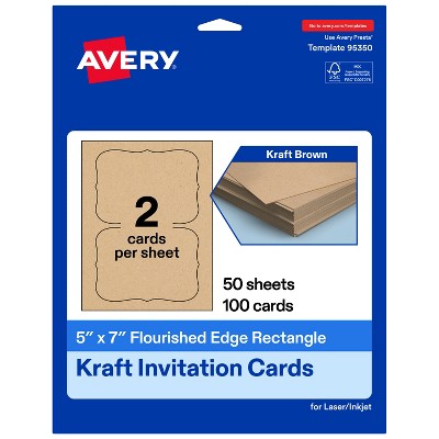 Avery Kraft Brown Invitation Cards, 5" x 7" Rectangle Flourished Edge