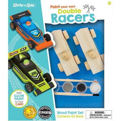Works of Ahhh Double Racer Wood Craft & Paint Kit - Wooden Race Car Craft Kit for Kids