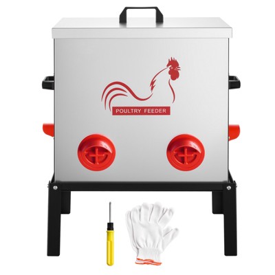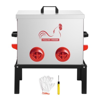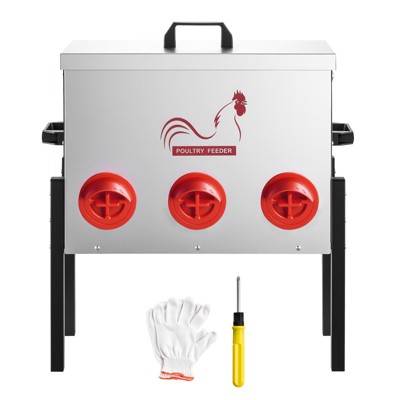 VEVOR Automatic Chicken Feeder, 40 lbs Capacity, 6 Feeding Ports No-Waste Poultry Feeder with Built-In Divider, with Latch & Handle, Metal, Silver