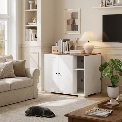Cat Litter Box Enclosure Furniture for 2 Cats Double Room Wooden Litter Box Cabinet