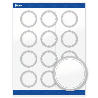 Avery Labels, 2" Diameter, Glossy White, Silver Mirror Metallic