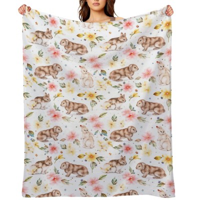 Cute Easter Bunny Blanket, Bunny Floral Throw Blanket for Couch Bed Sofa, Soft Cozy Girl Fleece Blanket,Lightweight Flannel Blanket 50x60 inches