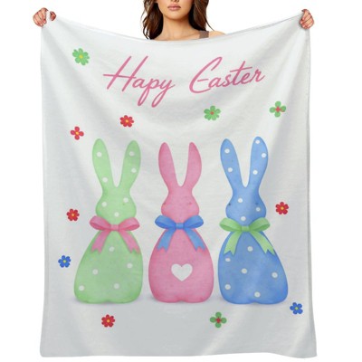 Cute Bunny Blanket Fuzzy Soft Cozy Happy Easter Day Eggs Throw Blankets Soft Throws Warm Lightweight Plush Throw Blanket 30x40 inches