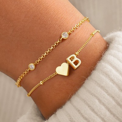 Turandoss 18K Gold Heart Initial Bracelets for Teen Girls Women, Layered Letter Link Bracelet for Kids, Birthday Valentine's Day Gift for Girls Women