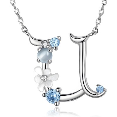 SmallRig 925 Sterling Silver Initial Necklace with Blue Flower CZ, Letter A-Z Pendant Gift for Women & Mom