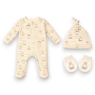 Miffy Baby Boys’ 3-Piece Ultra-Soft Sleep N’ Play Coverall, Beanie & Mitten Layette Sets
