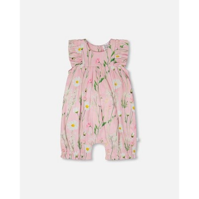 Deux par Deux Girl Viscose Romper Pink Printed Flowers