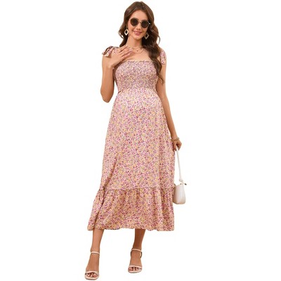 BLUEMING Womens Maternity Midi Dress Summer Floral Boho Suspender Square Neck Swing A Line Sundress