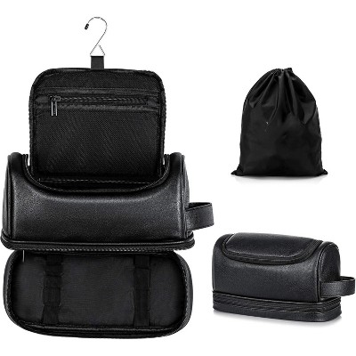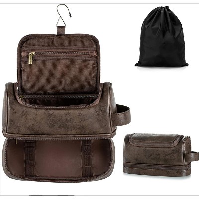 Large PU Leather Hanging Toiletry Bag for Men, Waterproof Travel Organizer with Shoe Pocket & Hook