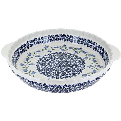 Blue Rose Polish Pottery Z148 Manufaktura Pie Plate With Handles