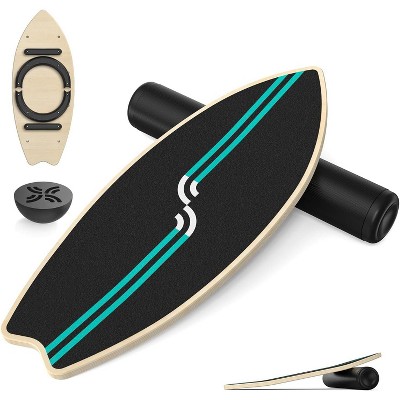 Etokfoks 8 in 1 Wooden Balance Board with Roller Ball and Half Ball Supports 450 lbs for Core Strength Balance Training Home Gym 1 Piece