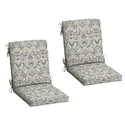 ARDEN 2-Pack Outdoor Patio Dining Chair Cushion, 20x44, Rain-Proof Seat Pad, Fade-Resistant Outdoor Cushion Neutral Aurora Damask