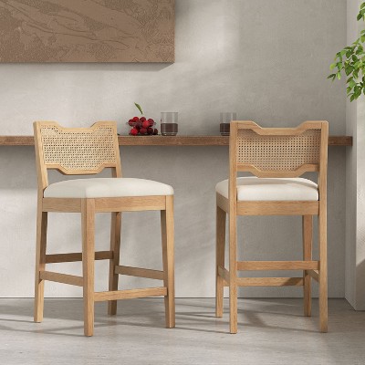 Christopher Knight Home Pedro Modern Upholstered Rubberwood Bar Stools with Faux Leather Backrest (Set of 2)
